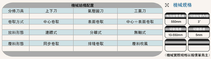 配合大量分條使用紙管切割(如opp膠帶用紙管)。